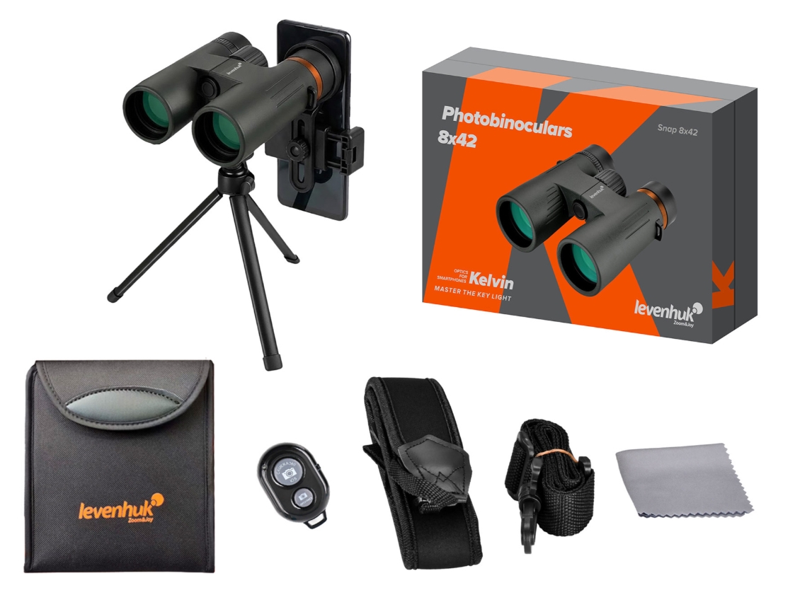 Фотобинокль Levenhuk Kelvin Snap 8x42 превратит ваш смартфон в мощную камеру с 8-кратным оптическим увеличением. С ним вы сможете не только наслаждаться яркими моментами наблюдений, но и сохранять фото и видео на своем телефоне и делиться ими в соцсетях и с близкими.