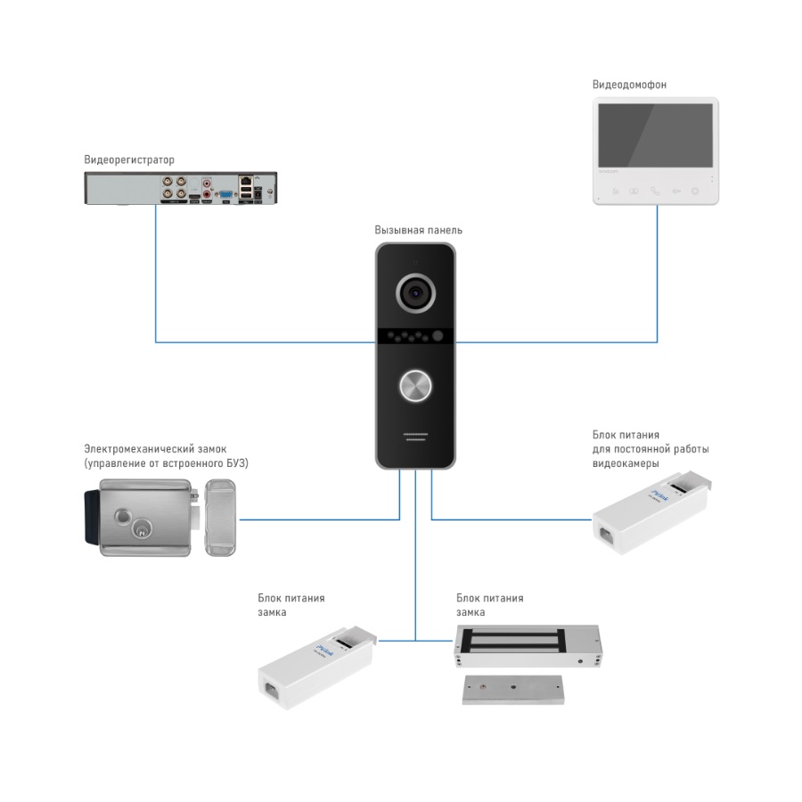 ИК-подсветка с дальностью 3м позволяет увидеть посетителя в условиях недостаточной освещенности. Встроенное реле даёт возможность управлять любым электрическим замком. Благодаря встроенному блоку управления замком (БУЗ) панель может управлять электромеханическим замком без источника питания, тем самым упрощает монтаж и стоимость всей системы.
