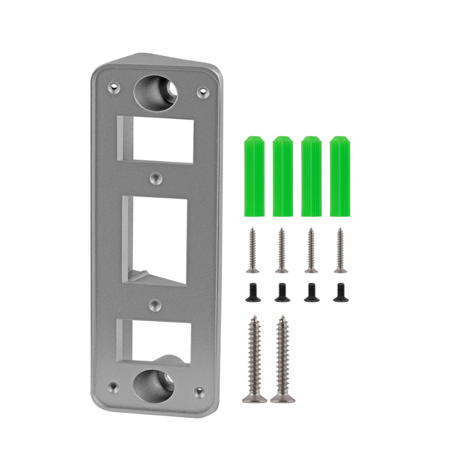 Прочный металлический корпус надежно защищают устройство от внешних воздействий, а угловое крепление, идущее в комплекте, позволят установить вызывную панель в любом месте.