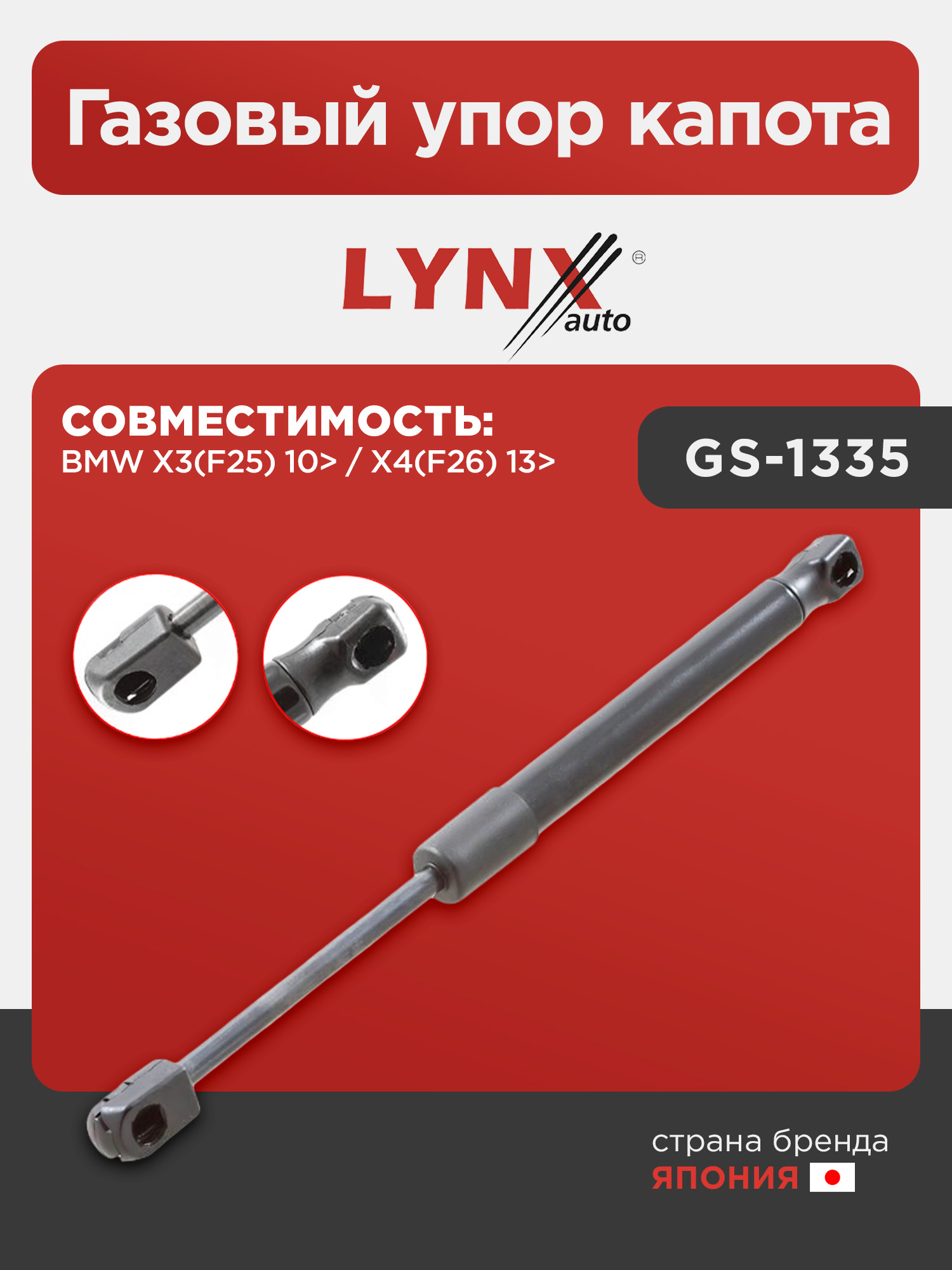 Газовый упор капота LYNXauto GS-1335. Для: BMW БМВ X3(F25) 10> / X4(F26) 13>