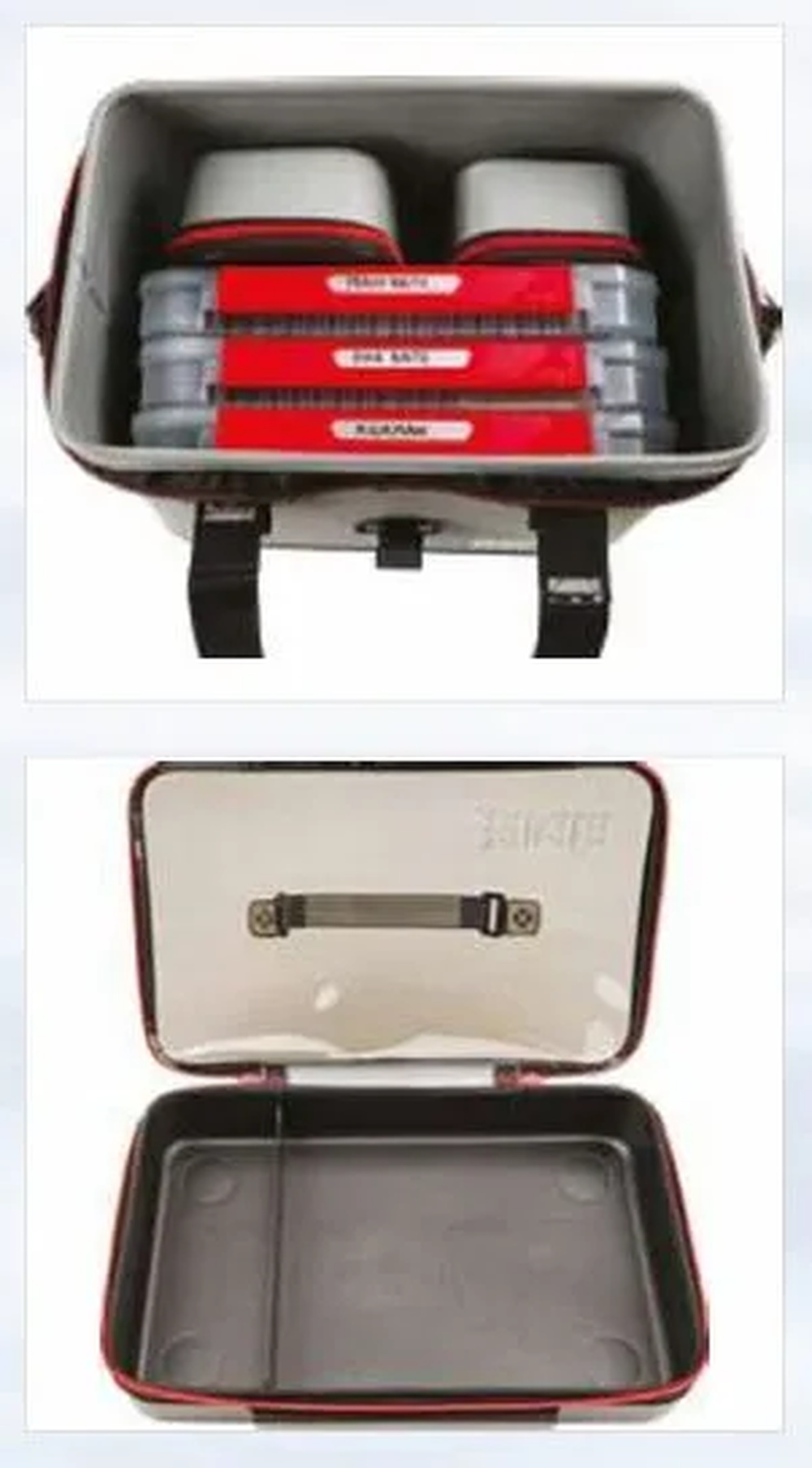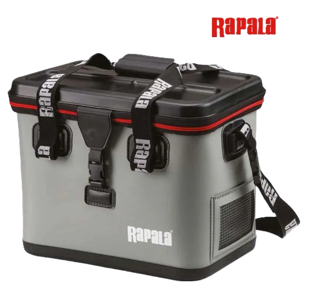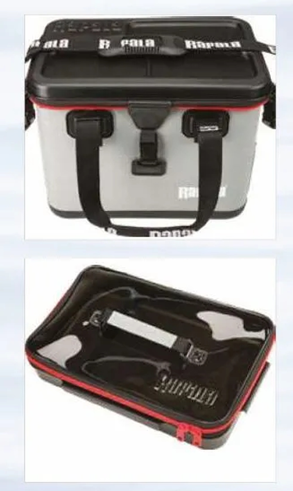 Её корпус толщиной 1,5 мм полностью водонепроницаем, а усиленное дно и коррозионностойкая молния обеспечивают надёжную защиту содержимого. Внутри легко размещаются до пяти контейнеров Rapala 356 (не входят в комплект). Внутренний прозрачный лоток с обратной стороны крышки и складной ручкой позволяет удобно разместить аксессуары и инструменты. Жёсткая крышка ящика при необходимости превращается в компактный столик для быстрой сортировки приманок. В комплекте — съёмный ремень и боковые сетчатые карманы.