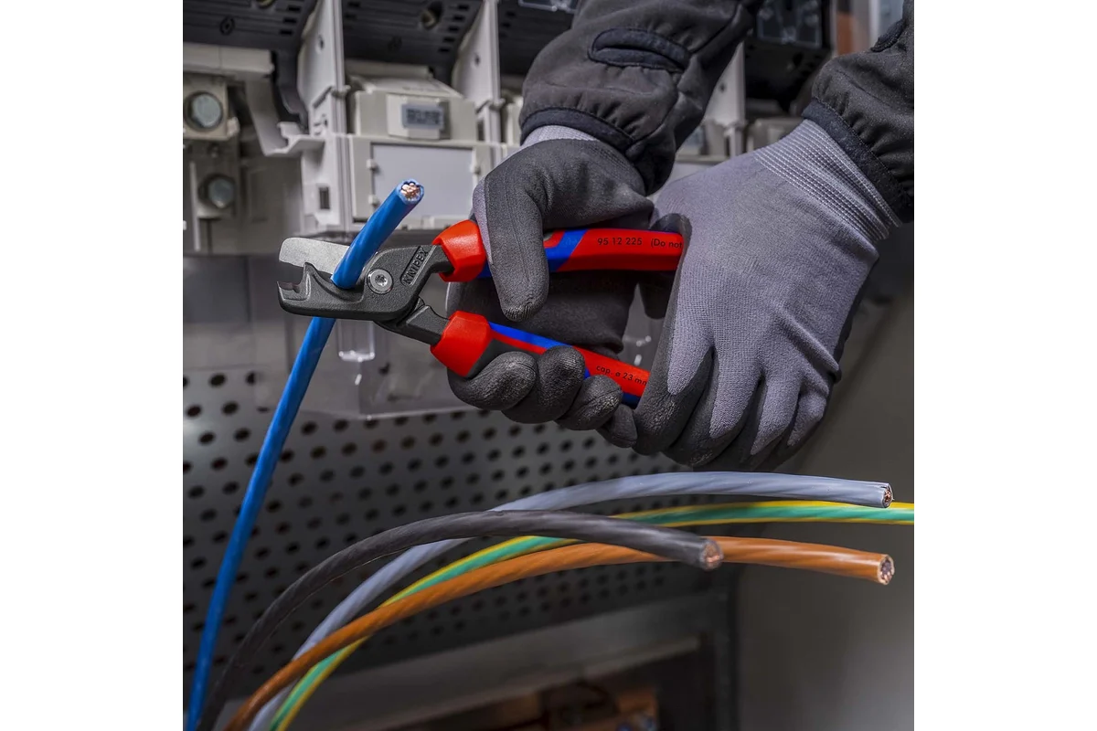 Отличная режущая способность: разрезает одножильные медные или алюминиевые кабели сечением до 35 мм², многожильные кабели сечением до 70 мм² и тонкие многожильные кабели сечением до 120 мм²