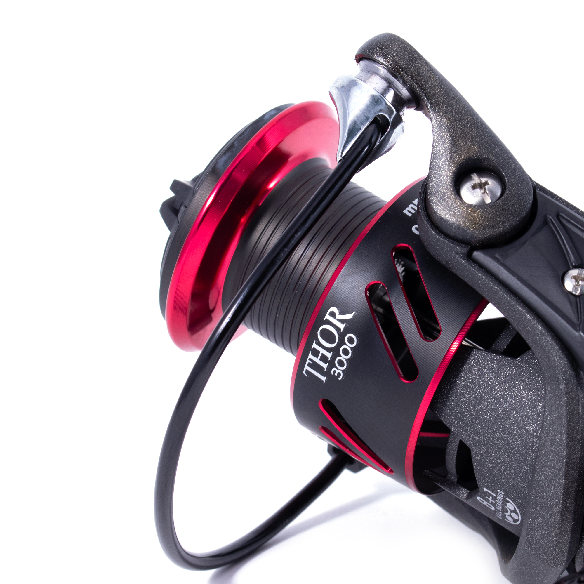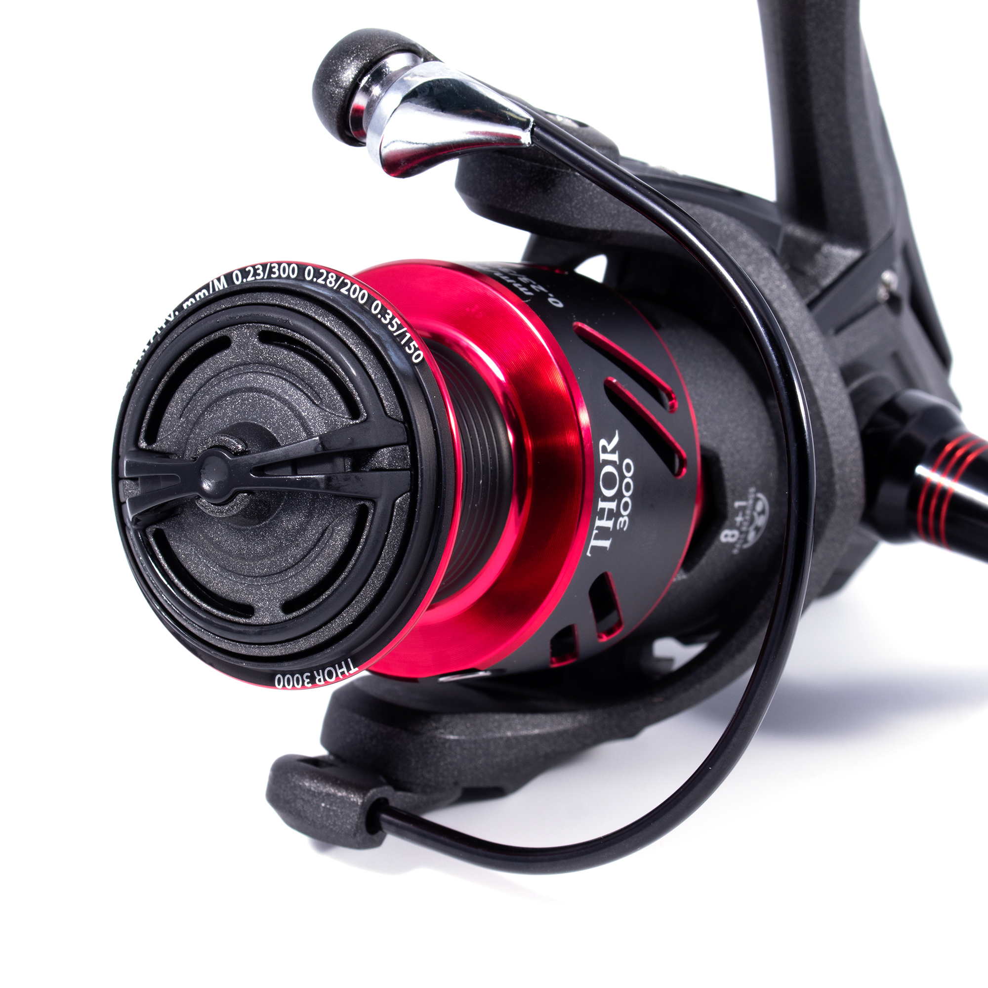 Thor - серия катушек от компании Namazu Pro, включающая в себя три модели. Катушку отличает оригинальный дизайн корпуса и ротора. Вся линейка катушек оснащена рукоятками из анодированного алюминия. Основная шпуля изготовлена из алюминия, в комплекте поставляется запасная графитовая шпуля. Thor имеет тщательно сбалансированный ротор и мгновенный антиреверс. Восемь подшипников, выполненных из нержавеющей стали, отвечают за плавное и стабильное вращение. Отличные силовые и ходовые качества делают данную модель превосходным выбором для спиннинговой ловли.