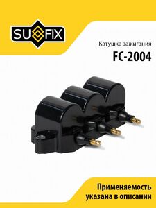 Катушка зажигания SUFIX FC-2004. Применение: CHEVROLET Matiz(M200/M250) 0.8 05-13 / Spark(M150) 0.8 00-06, DAEWOO Matiz(M100/M150) 0.8 98-06.