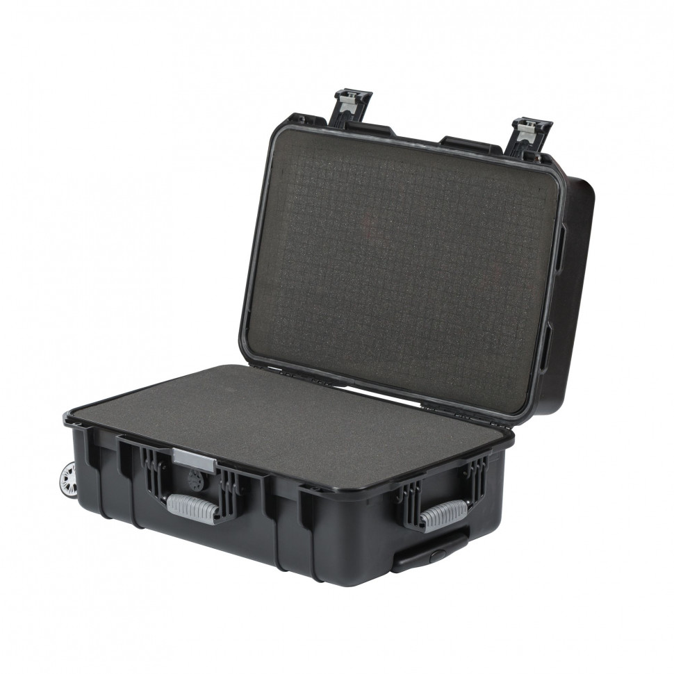 Кейс защитный, ударопрочный OffRoadTeam ORT-A654127 Серия-Alps объем 49,23л, внутренние размеры 557*348*254мм, IP65, с колесами. Кейс предназначен для хранения и перевозки приборов, оборудования, снаряжения, инвентаря. Высокий класс влагозащиты (герметичности) обеспечивает защиту содержимого от пыли, влаги, ударов при перевозке и хранении. Ребра жесткости усиливают прочность стенок. Кейс оснащен автоматическим воздушным клапаном для выравнивания давления. Кейс изготовлен из полипропилена (PP), ручки имеют прорезиненную вставку. Замки кейса OffRoadTeam Серии-Alps снабжены фиксатором, что исключает случайное открытие кейса при падении или ударе. Характеристики: Внешние размеры: 653*413*275мм Внутренние размеры: 557*348*254мм Глубина крышки/корпуса: 107/147 Объем: 49,23л С колесами Вес: 6,13кг Воздушный клапан: автоматический Материал: Полипропилен (PP) Влагозащита: IP65 Диапазон рабочих температур: -40℃ +60℃ Цвет: черный Наполнитель: НЕТ