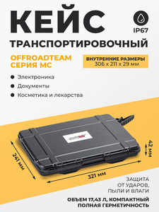 Кейс пластиковый OffRoadTeam серия МС модель MC4002, внутренние размеры 306*211*29мм, объем 1,87л, IP67