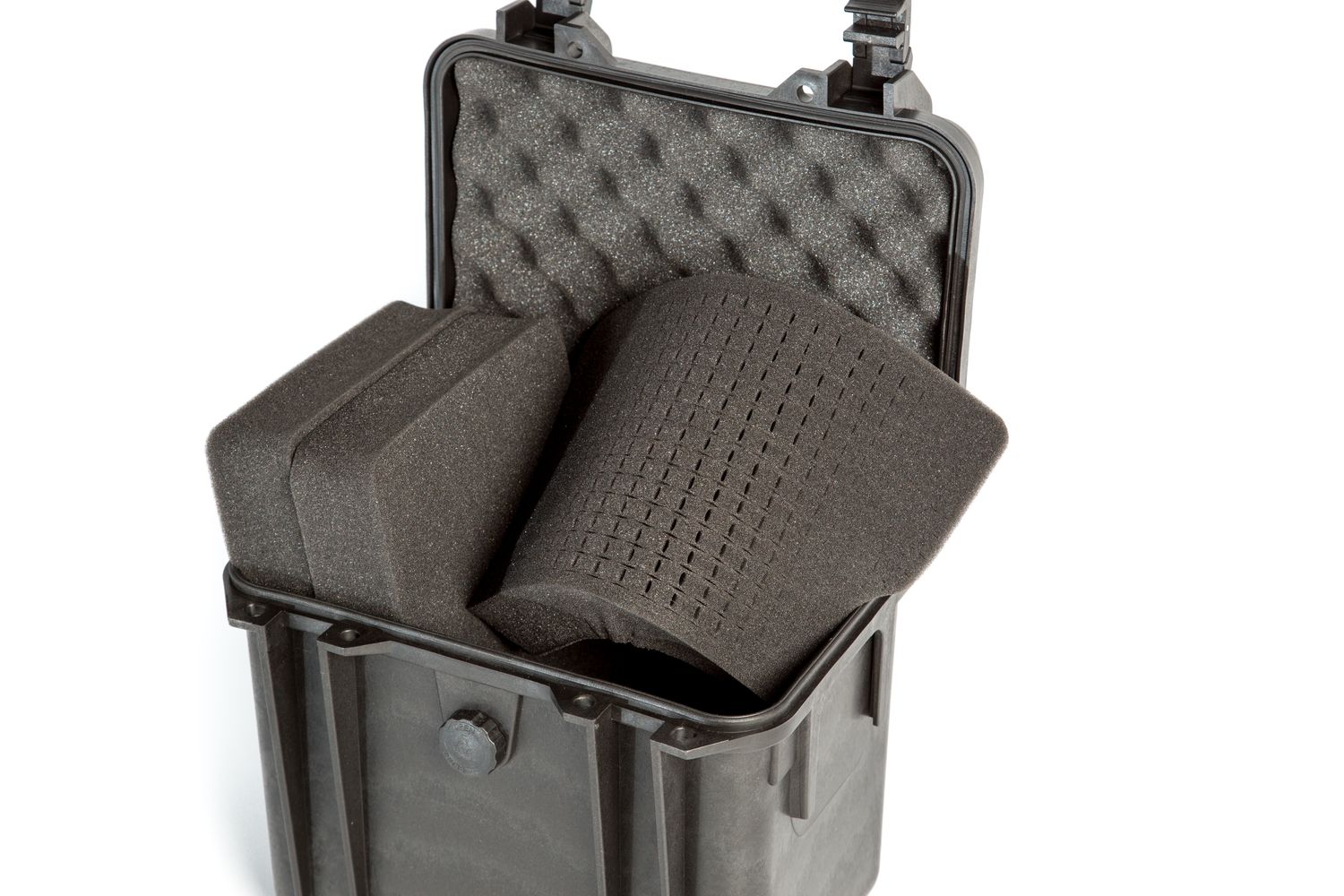 В комплекте с кейсом поставляется ложемент, изготовленный из поропласта с насечками, который позволяет быстро формировать ячейки под размер подходящего прибора или оборудования.