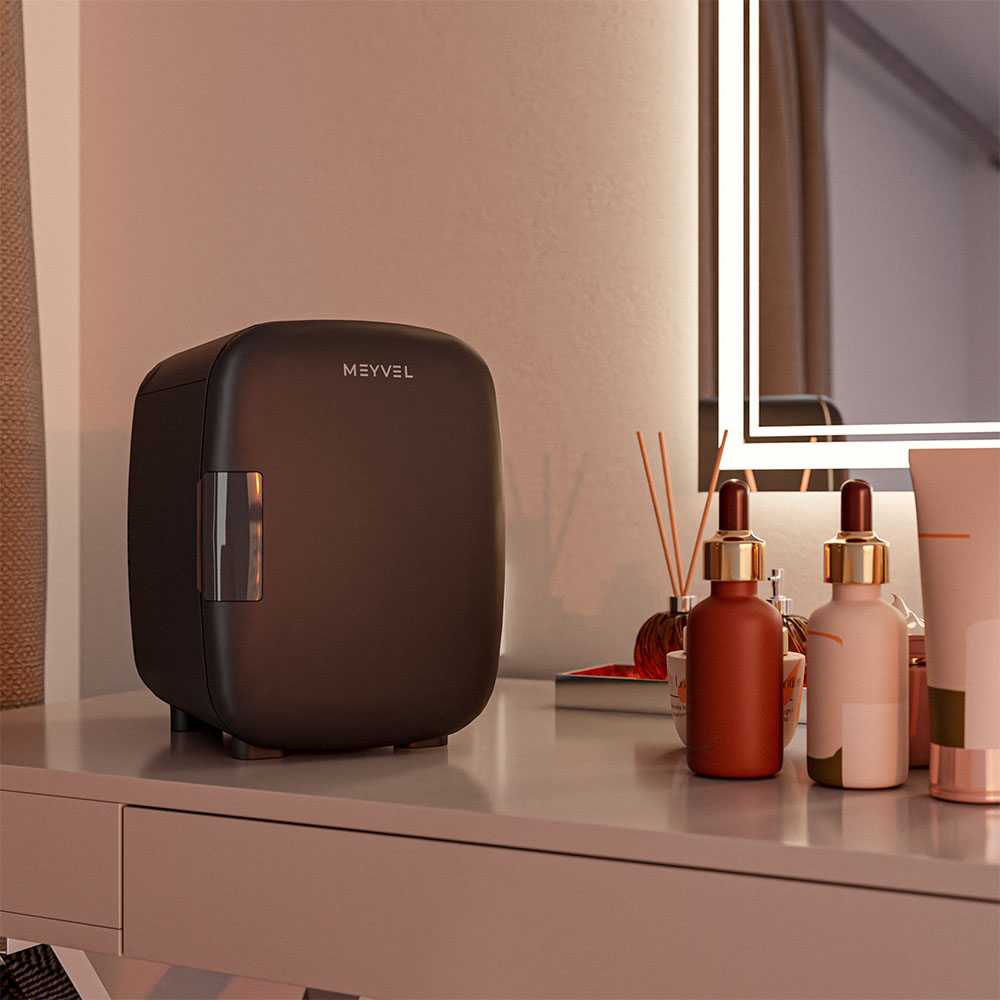 Meyvel MB-04C4B — это компактный термоэлектрический холодильник для косметики. Он экономит место, бережёт косметику и просто радует взгляд каждый раз, когда вы открываете дверцу. Модель создана специально для хранения уходовых средств, которые требуют стабильной прохлады, — от патчей и кремов до сывороток и домашних масок. Устройство универсально и работает от обычной розетки или разъёма USB (кабели в комплекте).