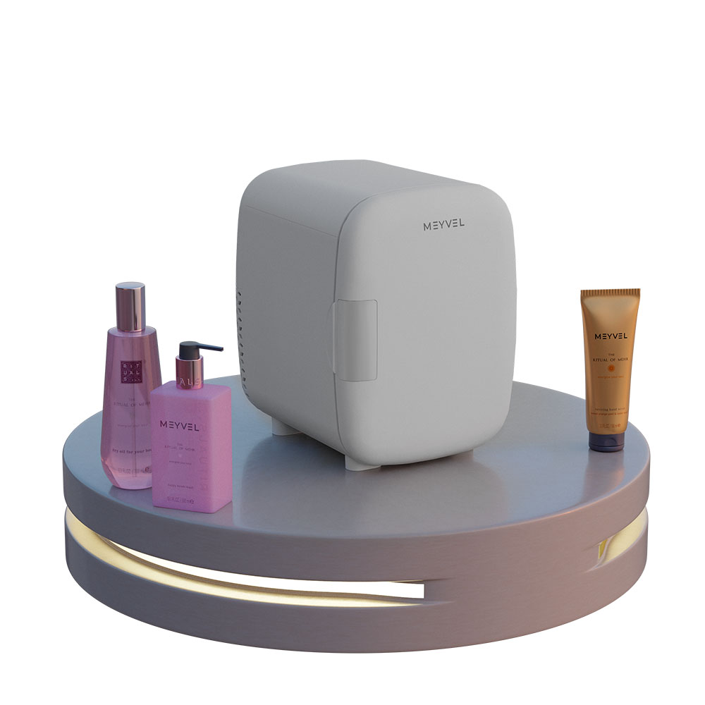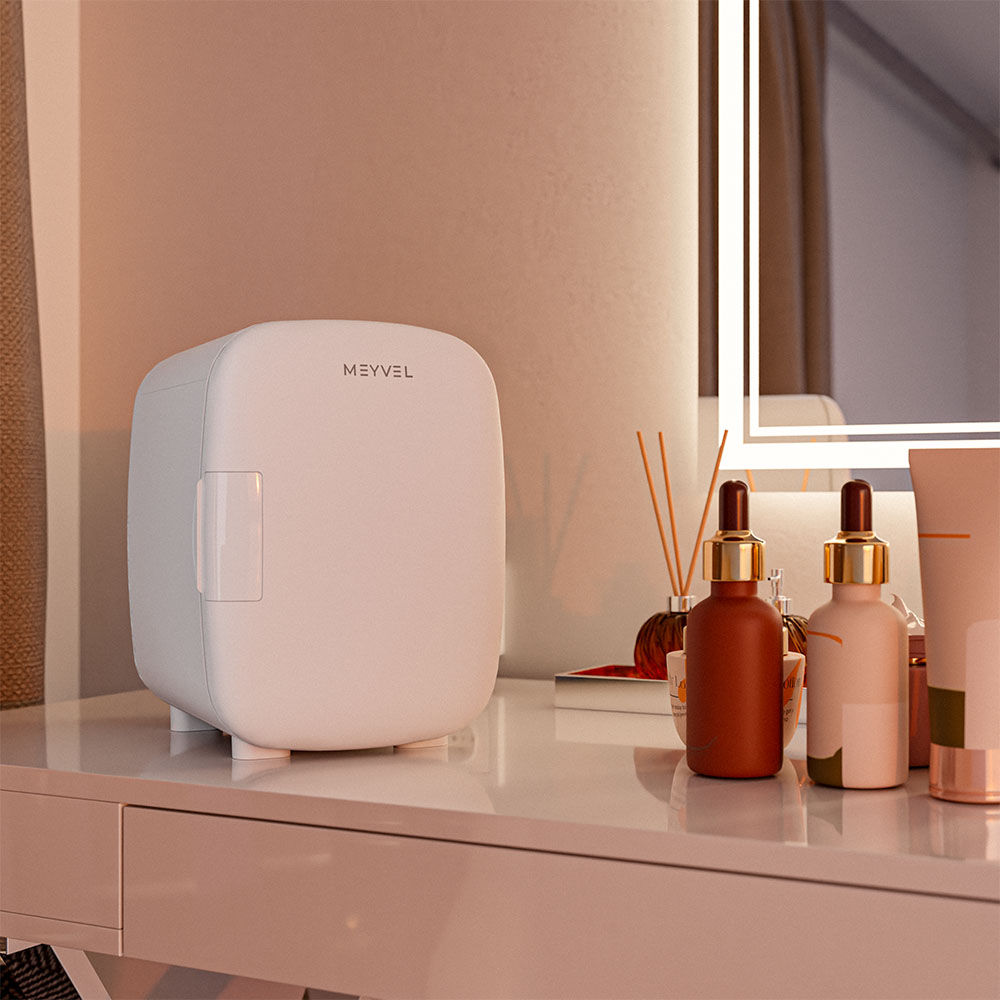 Meyvel MB-04C4W — это компактный термоэлектрический холодильник для косметики. Он экономит место, бережёт косметику и просто радует взгляд каждый раз, когда вы открываете дверцу. Модель создана специально для хранения уходовых средств, которые требуют стабильной прохлады, — от патчей и кремов до сывороток и домашних масок. Устройство универсально и работает от обычной розетки или разъёма USB (кабели в комплекте).
