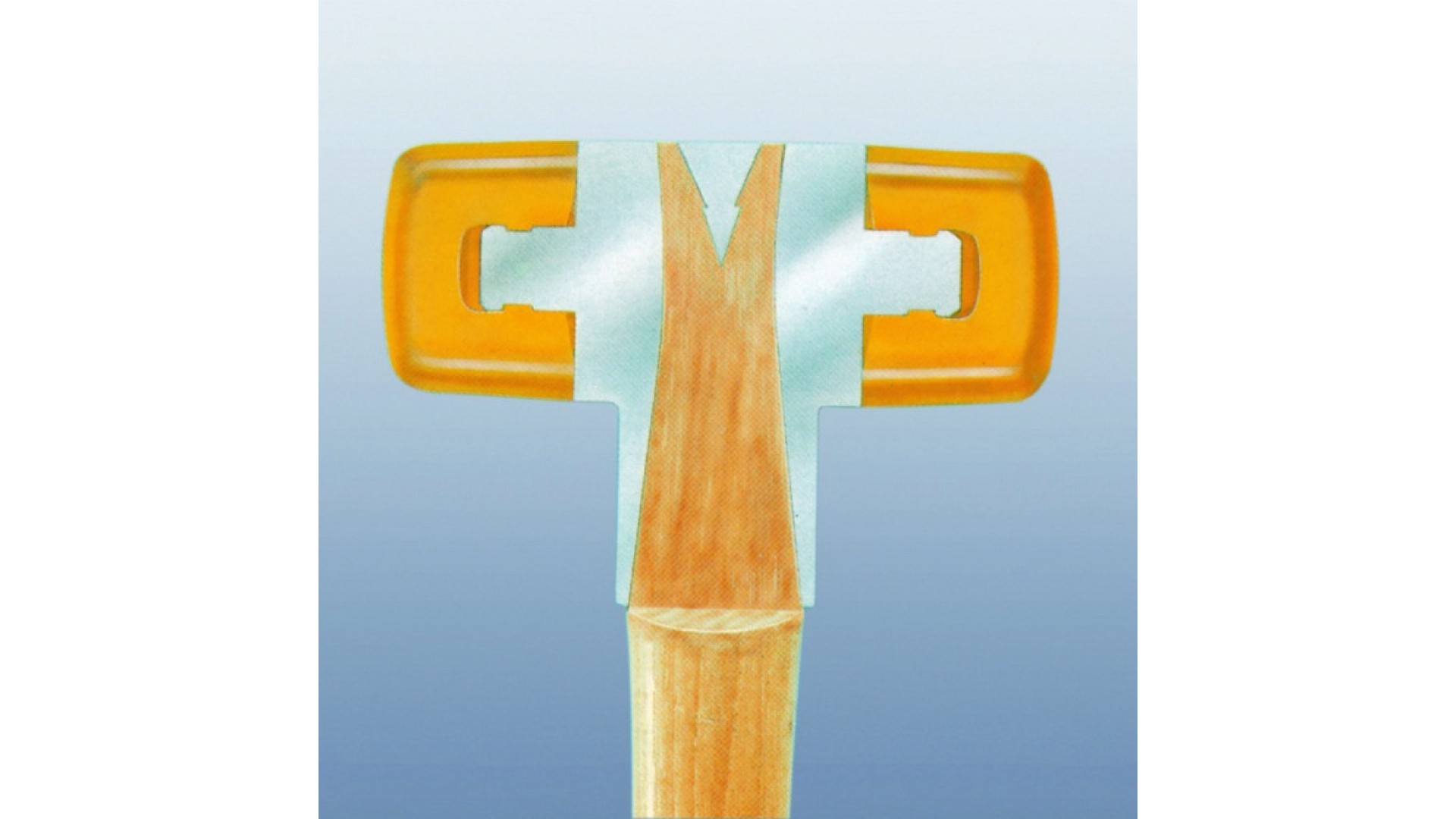 Молоток с мягкими бойками Wera: конструкция с клином в форме двустороннего конуса для надёжного неразъёмного соединения головки и ручки молотка. Головка молотка из нейлона. Ручка из высококачественного ясеня. Разные варианты применения за счёт переоснащения головки молотка. Для работ по жести, монтажа, возведения палаток, павильонов, выставочных стендов.