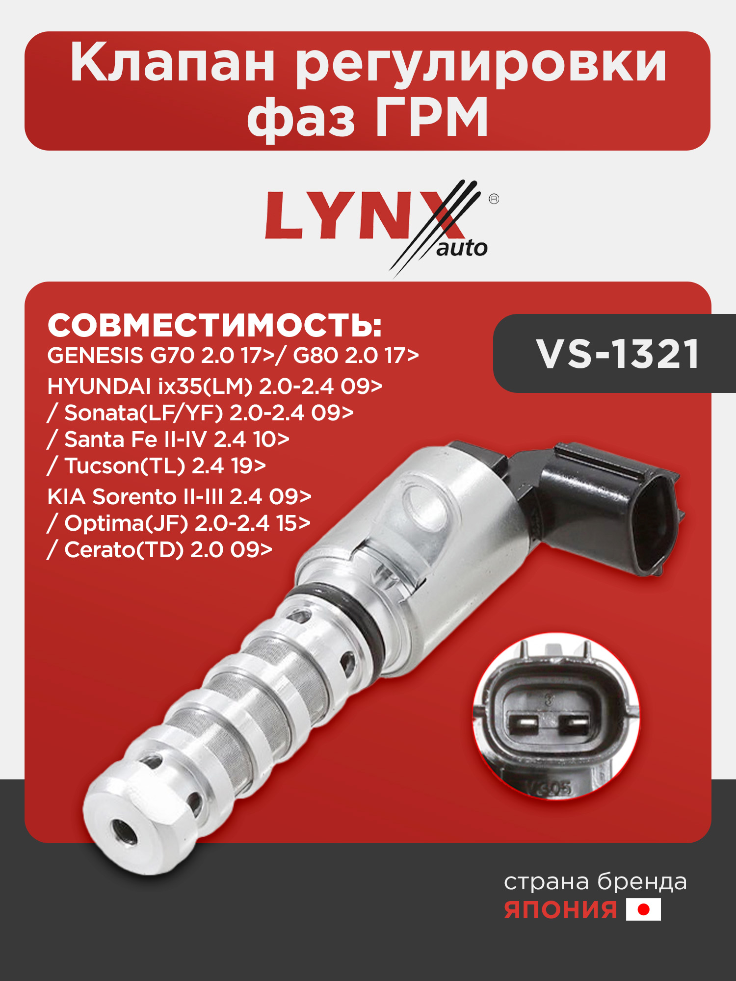 Клапан регулировки фаз ГРМ LYNXauto VS-1321. Для GENESIS G70 2.0 17>/ G80 2.0 17>, HYUNDAI ix35(LM) 2.0-2.4 09>/ Tucson(TL) 2.4 19>/ Sonata(LF/YF) 2.0-2.4 09>/ Santa Fe II-IV 2.4 10>, KIA Sorento II-III 2.4 09>/ Optima(JF) 2.0-2.4 15>/ Cerato(TD) 2.0 09>