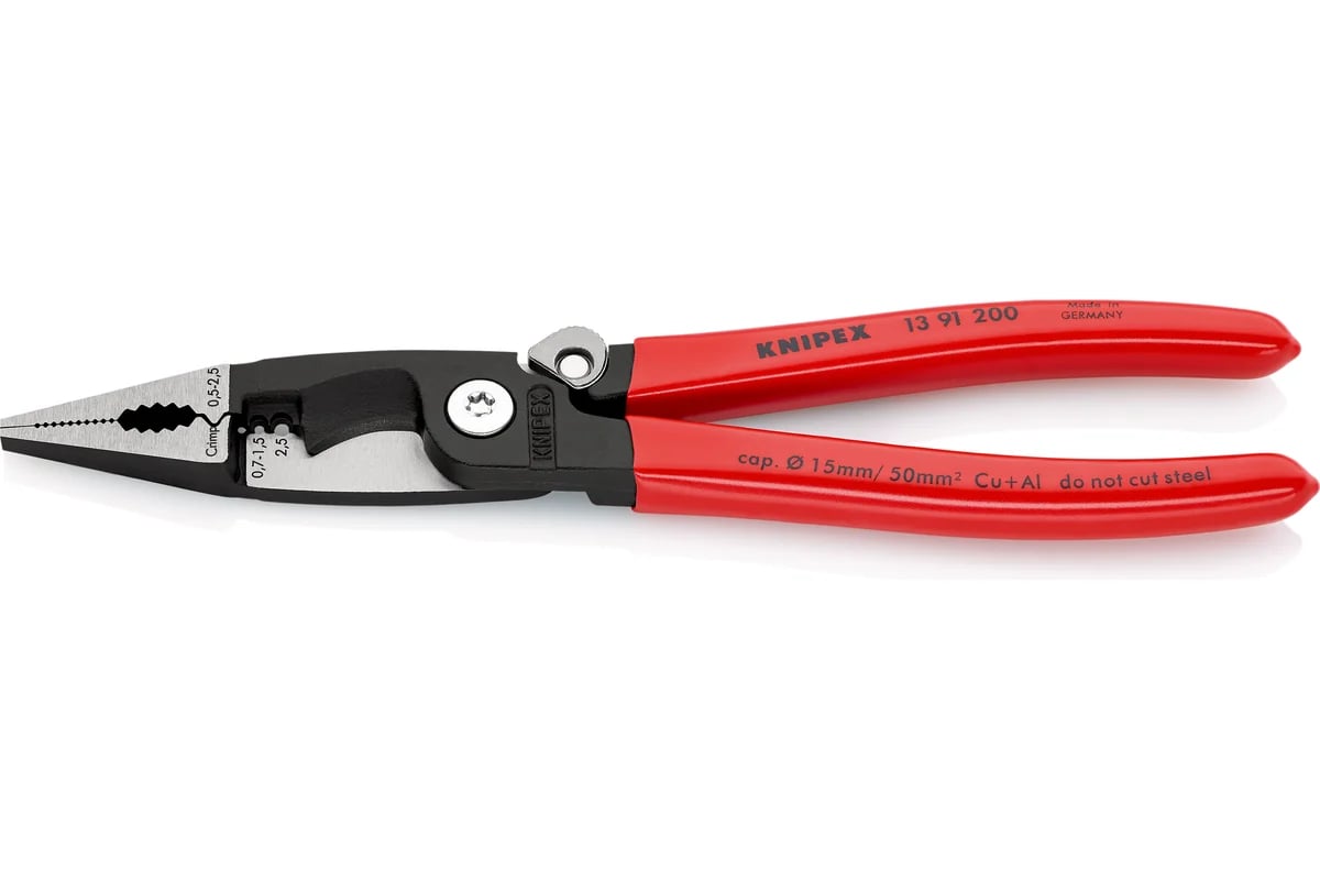 Клещи электромонтажные, KNIPEX 6-в-1, зачистка 0.75 – 1.5 / 2.5 мм², рез Ø 15 мм / 50 мм², 200 мм, защёлка, фосфатированные, обливные ручки, SB