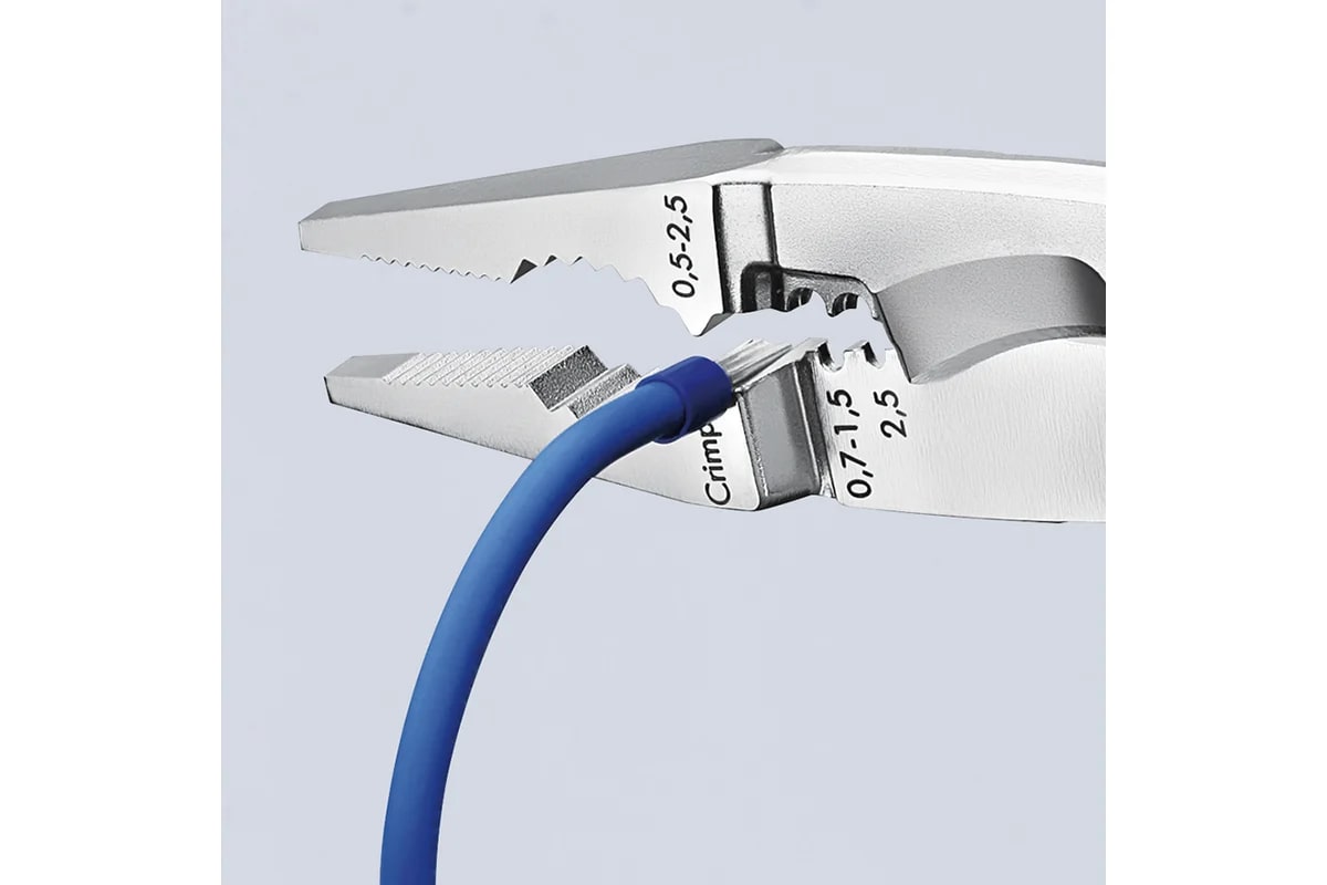 Многофункциональные клещи для электромонтажных работ- для захвата плоского и круглого материала, гибки, удаления заусенцев, резки кабеля, удаления изоляции и опрессовки контактных гильз