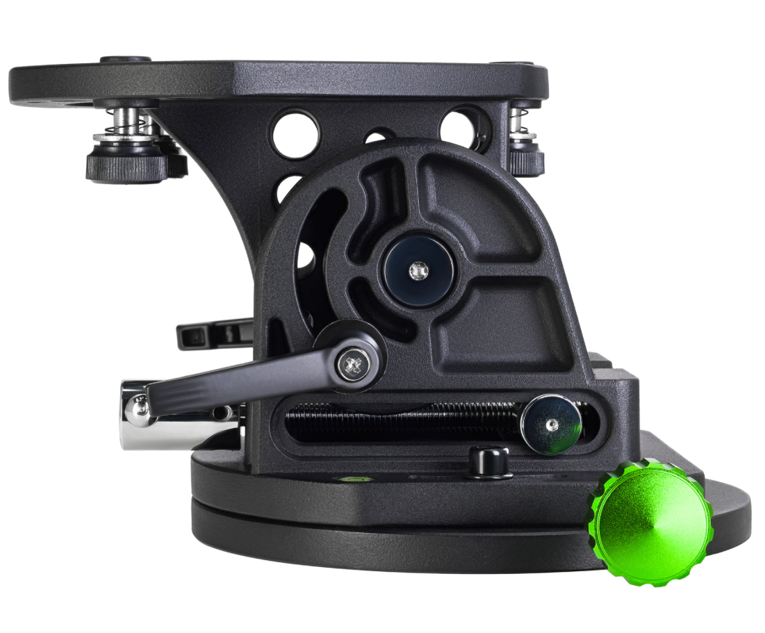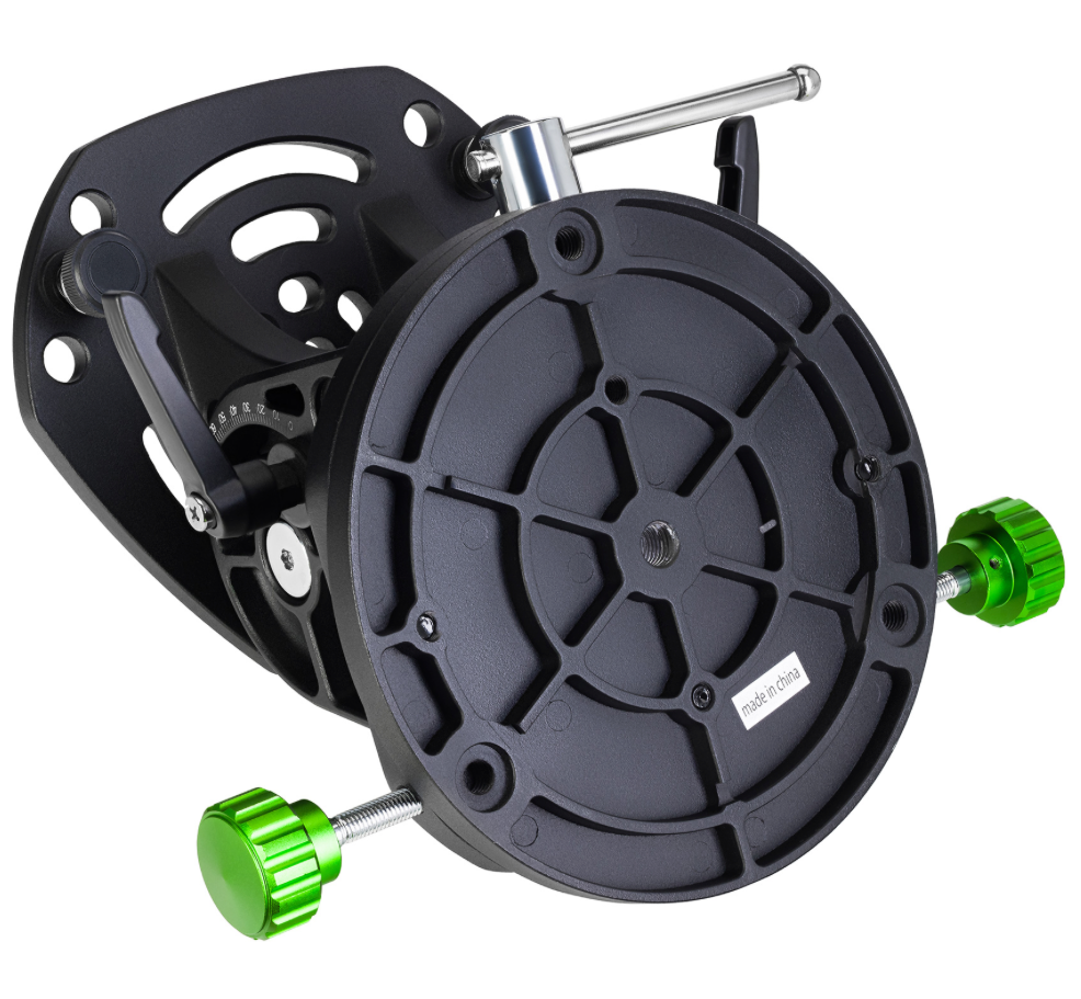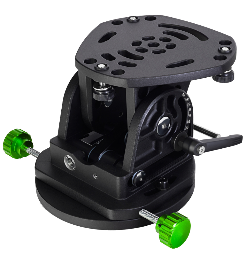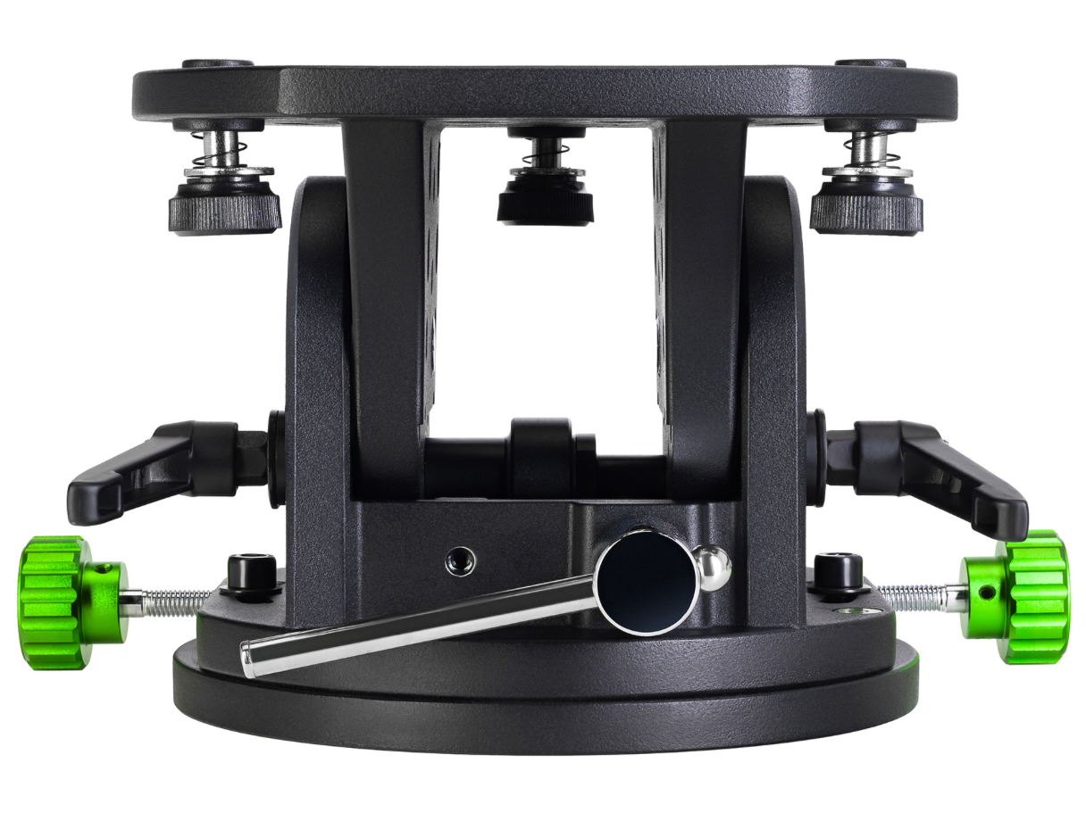 Вес экваториального клина составляет 4 кг, максимальная грузоподъемность – 15 кг. Широта регулируется в диапазоне от 0° до 70°, а азимут – в пределах ±15°. Угол наклона аксессуара легко меняется без дополнительных настроечных инструментов даже при его полной загруженности. Для точной регулировки широты на клине предусмотрена специальная информативная шкала.