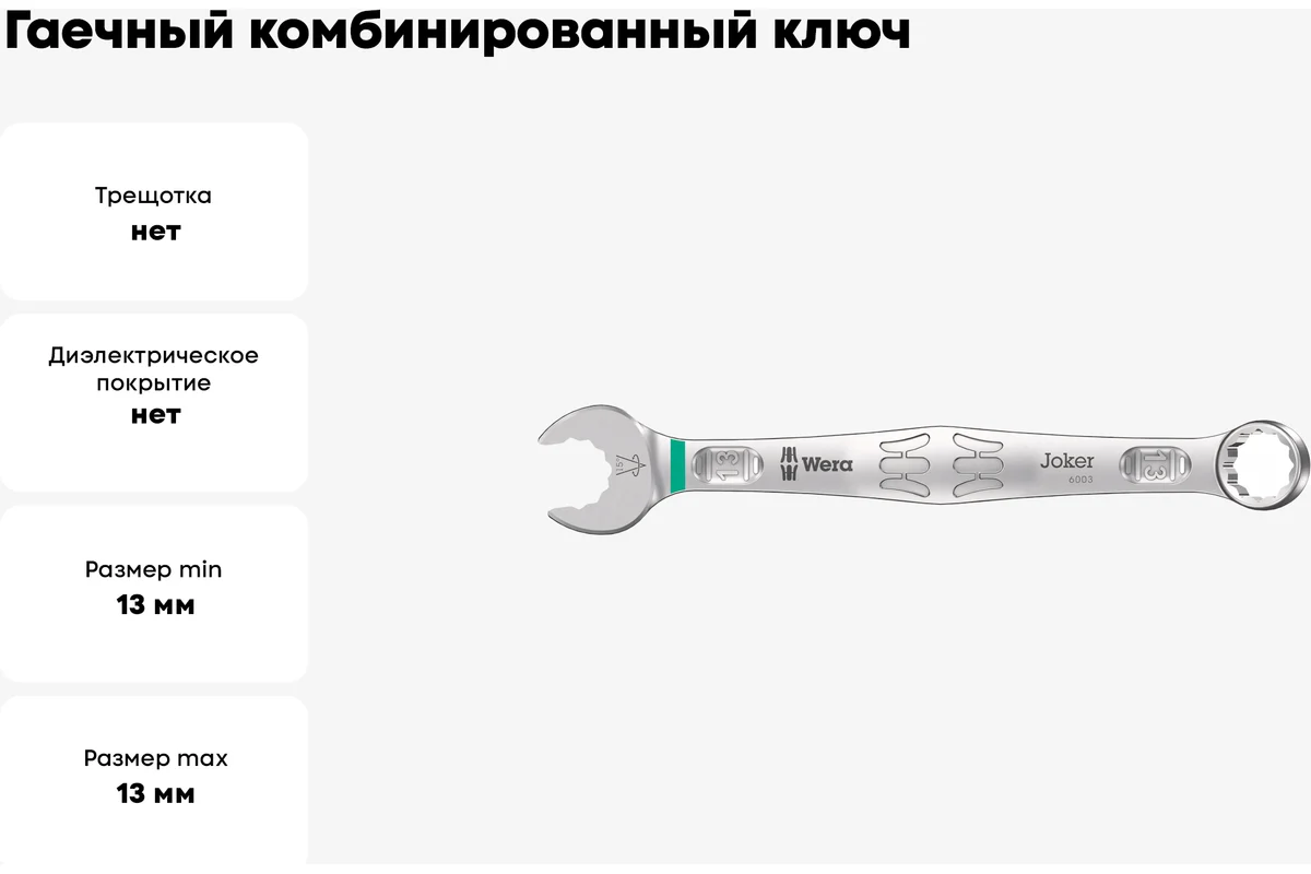Ключ гаечный WERA комбинированный, 13 x 160 мм 6003 Joker