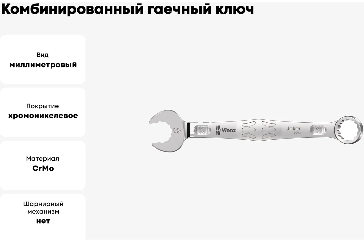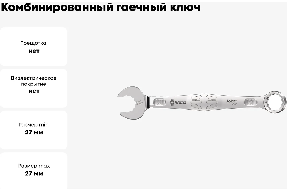 Ключ гаечный WERA комбинированный, 27 x 300 мм 6003 Joker