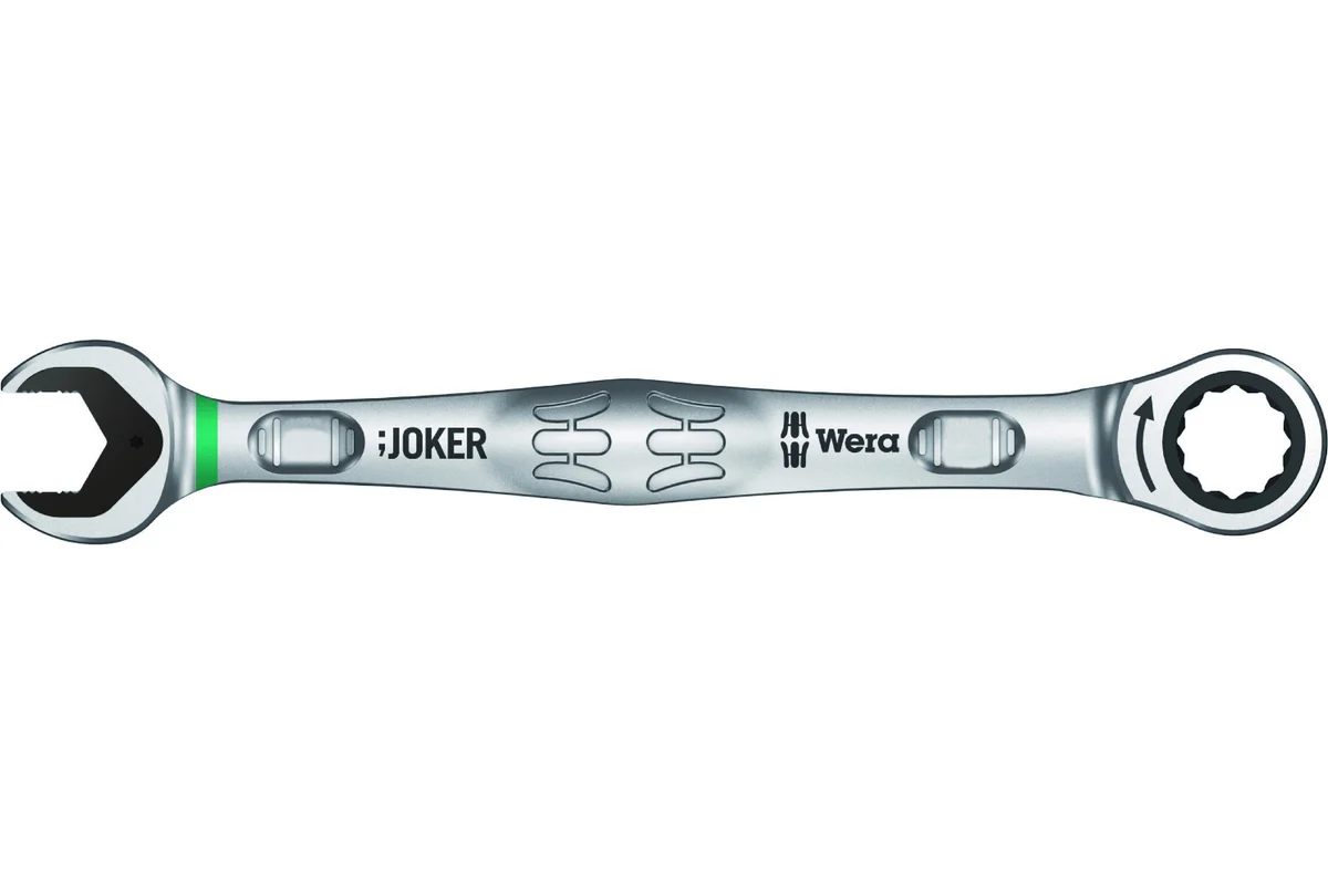 Комбинированный ключ с трещоткой Joker 17 мм Wera WE-073277 представляет собой двухсторонний инструмент с разными профилями: на одном конце ключ с трещоткой, а на другом - рожковый ключ. Он служит для монтажа и демонтажа шестигранных крепежей. Ключ часто используется в автомастерских. Изделие сделано из хромомолибденовой стали с хромоникелевым покрытием, благодаря чему имеет долгий срок службы. Длина данной модели 224 мм.
