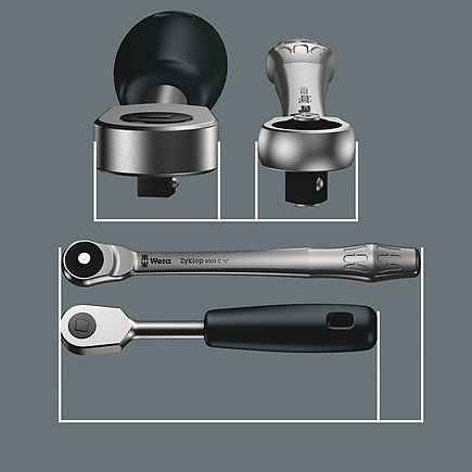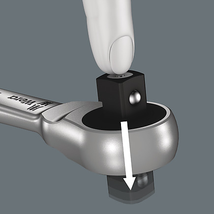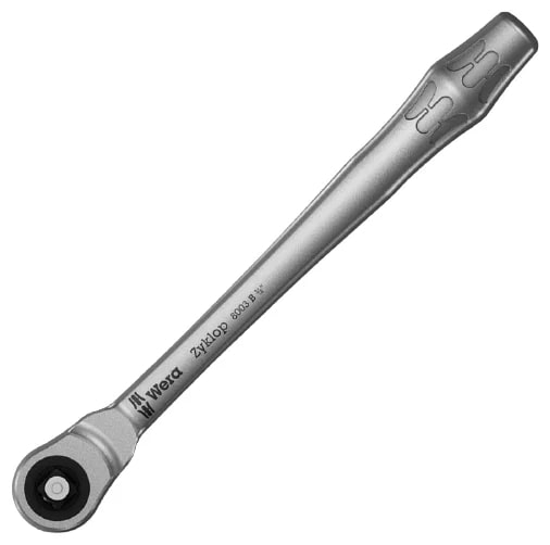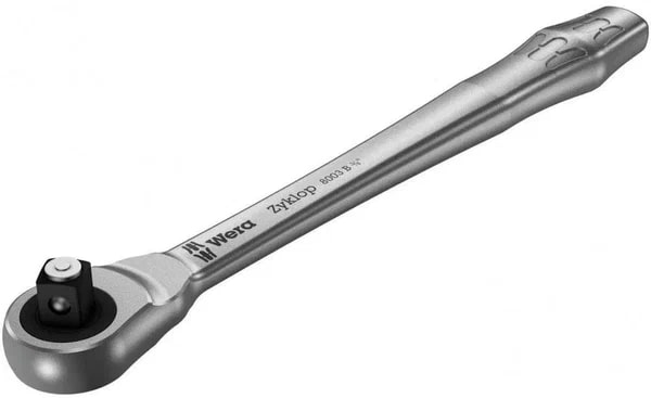 Из-за того, что рабочие пространства становятся все компактнее, меньше места в них остаётся и для работы трещоткой. Wera решила эту проблему. Для этого наши разработчики тщательно изучили варианты работы в стесненных условиях. Получилась чрезвычайно тонкая и прочная трещотка Zyklop Metal с длинным рычагом. Если важно не потерять насадку и ни в коем случае нельзя допустить случайного переключения реверса, то лучше выбрать трещотку Zyklop Metal Push.