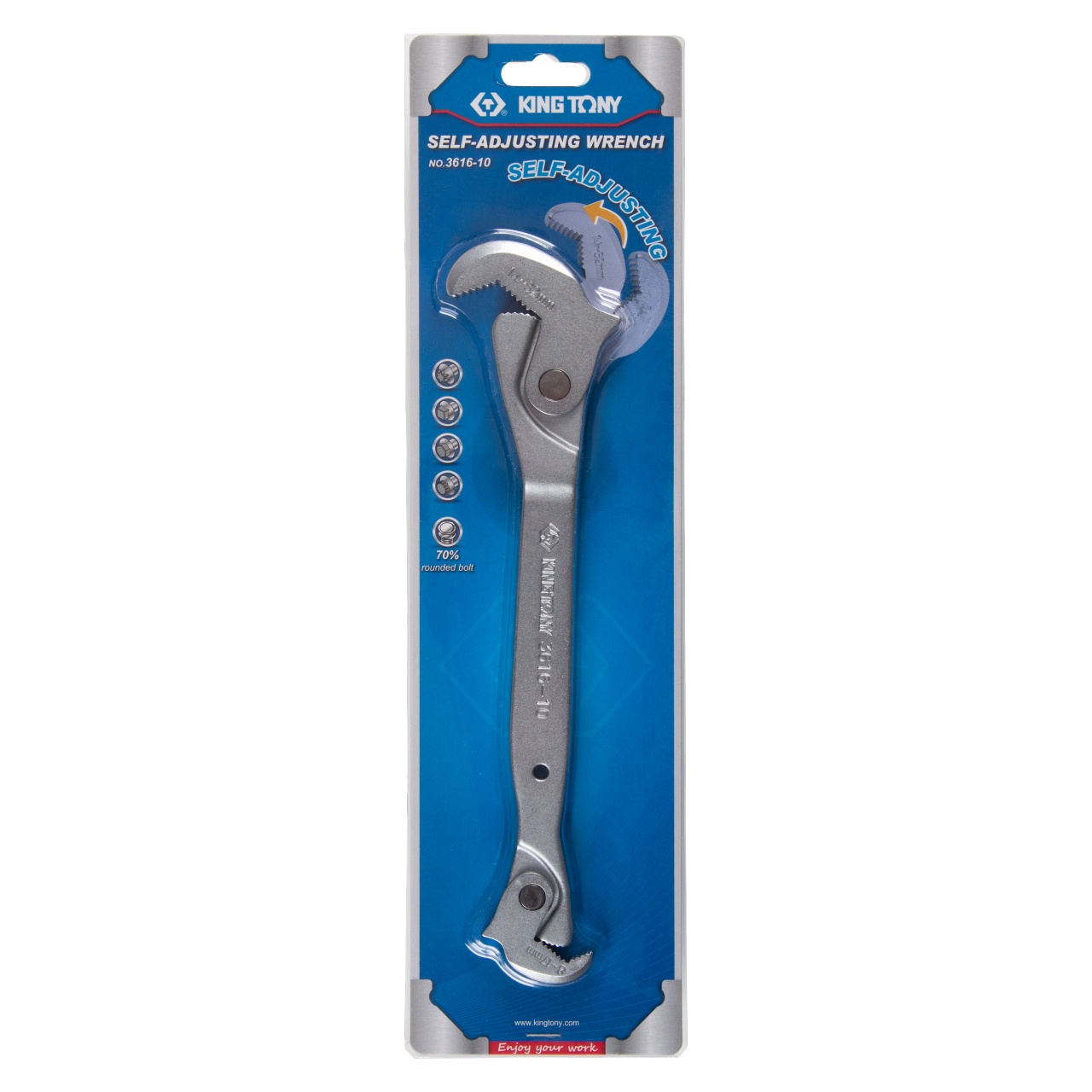 Универсальный саморегулирующийся двухсторонний ключ KING TONY — инновационный инструмент для быстрого и надёжного захвата крепежа различного типа, включая изношенные («зализанные») гайки, болты, трубные соединения и детали без чётко выраженных граней.