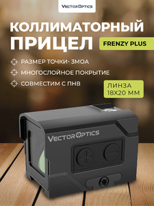Vector Optics FRENZY-PLUS 1x18x20 (SCRD-63) - коллиматорный прицел премиум класса с многослойным просветляющим покрытием. Очень компактный размер. Подходит для гладкоствольного и нарезного оружия с сильной отдачей, а так же пневматики, пистолетов. Для крепления на пистолет GLOCK - снимается с основания. На пистолете должен быть предусмотрен соответствующий крепеж VT. Технология многослойного покрытия Multi Coated позволяет видеть изображение с четкими контурами и без искажений цветов в окне размером 18х20мм. Глаза стрелка не напрягаются и не устают даже при длительном отслеживании выбранной цели. Прицел может использоваться для различных оружейных моделей, благодаря универсальному креплению на платформу Weaver.