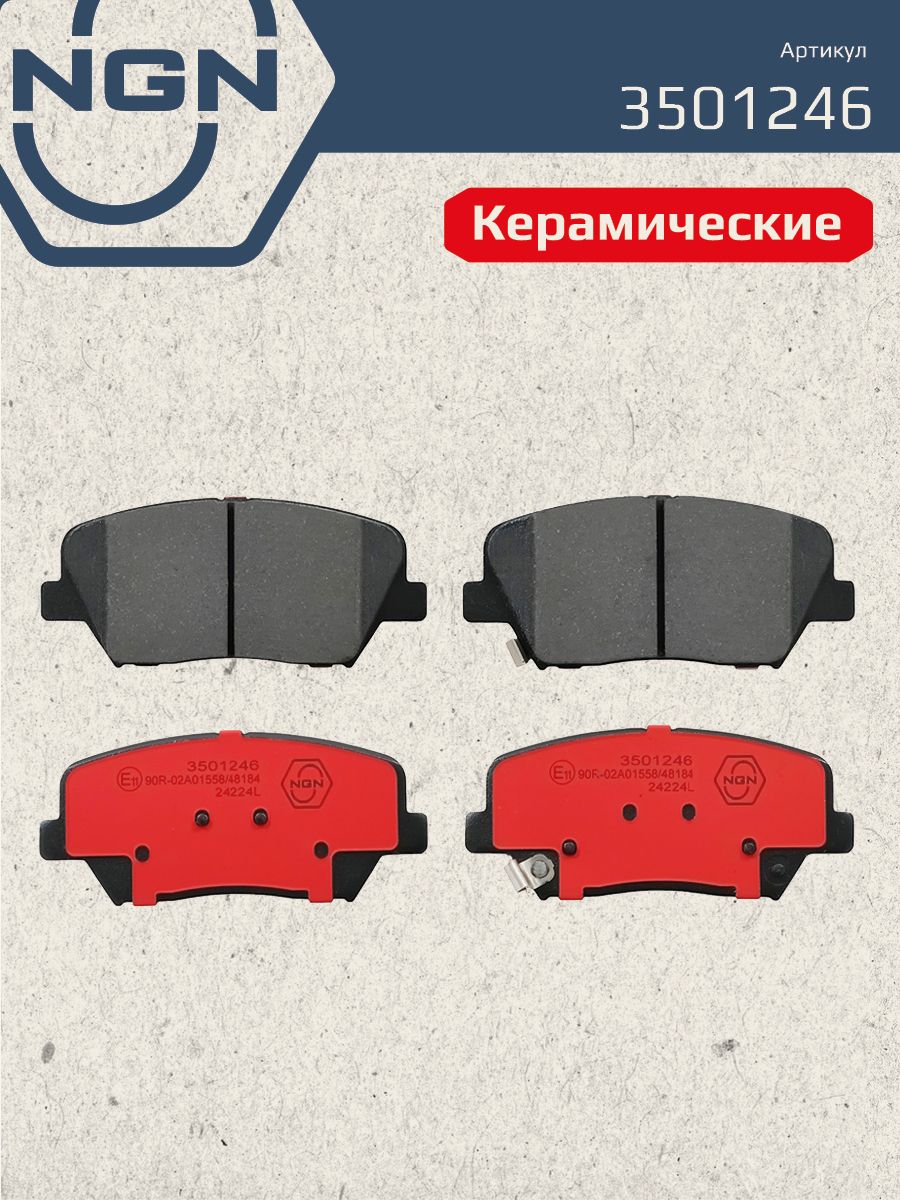 Колодки тормозные керамические, передние NGN 3501246. Для HYUNDAI Elantra 11> / i30(GD) 11>, KIA Ceed 12> / Cerato 13> / Sorento II 09> / Carens IV 11> / Veloster 11>Комплектация: