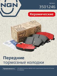 Колодки тормозные керамические передние NGN 3501246. Для HYUNDAI Elantra 11 i30(GD) 11 KIA Ceed 12 Cerato 13 Sorento II 09 Carens IV 11 Veloster 11