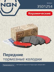 Колодки тормозные керамические, передние NGN 3501254. Для MITSUBISHI Pajero III-IV 00> / Pajero Sport 02>, MAZDA Mpv >99Комплектация:
