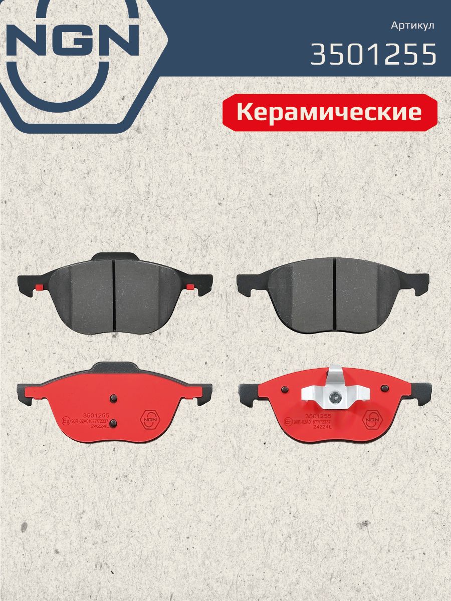 Колодки тормозные керамические передние NGN 3501255. Для FORD Focus II/Focus C-Max/Kuga 08 MAZDA 3 03 MAZDA 5 05 VOLVO C30 06 S40 04