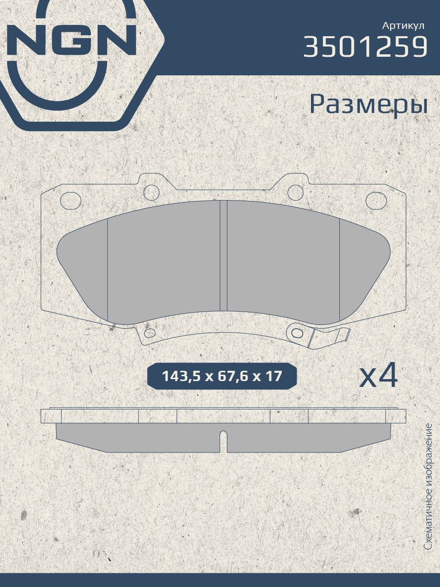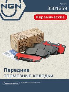 Колодки тормозные керамические, передние NGN 3501259. Для TOYOTA Fortuner 04> / Hilux VII 04>Комплектация:
