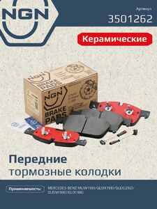 Колодки тормозные керамические, передние NGN 3501262. Для MERCEDES-BENZ ML(W166) 11> / GLS(X166) 15> / GLE(C292) 15> / GLE(W166) 15> / GL(X166) 12>Комплектация: