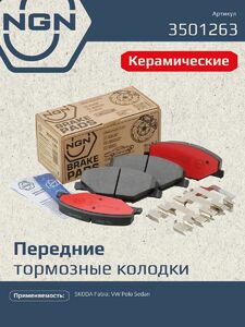 Колодки тормозные керамические передние NGN 3501263. Для SKODA Fabia 11 VW Polo Sedan 10