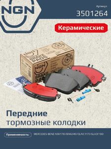 Колодки тормозные керамические, передние NGN 3501264. Для MERCEDES-BENZ A(W176) 12> / B(W246) 11> / CLA(C117) 13> / GLA(X156) 13>Комплектация: