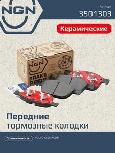 Колодки тормозные керамические, передние NGN 3501303. Для VOLVO XC60 08> / XC90 I 02>Комплектация: