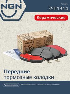 Колодки тормозные керамические, передние NGN 3501314. Для MITSUBISHI Lancer 03> / Outlander/Galant 00-04/Space Runner 00-03Комплектация:
