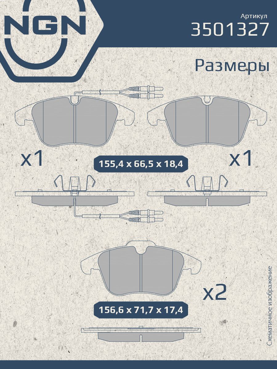 Колодки тормозные керамические, передние NGN 3501327. Для JAGUAR S-type 99-07 / XF 09-15 / XJ 2.7D-4.2 02-09 / XK 07-14Комплектация: