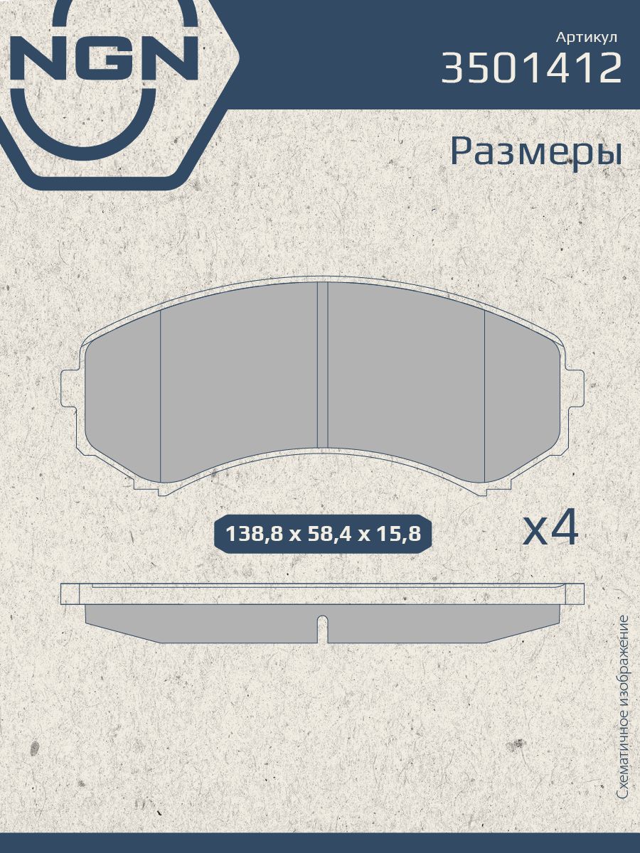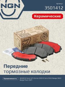 Колодки тормозные керамические передние NGN 3501412. Для MAZDA B-Serie 88-99 Demio 96-03 E-Serie 83-04 Bongo 83-04 Truck 10