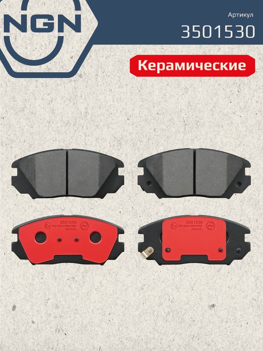 Колодки тормозные керамические передние NGN 3501530. Для HYUNDAI Sonata V 06 Tucson(JM) 04-10 Grandeur 2.2D-3.3 06 KIA Sportage II 2.0-2.7 04 Magentis 2.7 05 Opirus 3.8 06