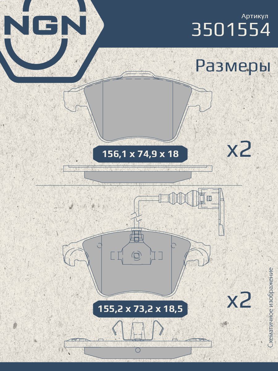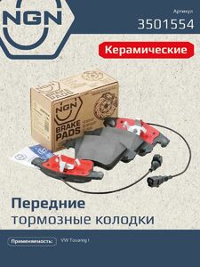 Колодки тормозные керамические, передние NGN 3501554. Для VW Touareg I 02>Комплектация: