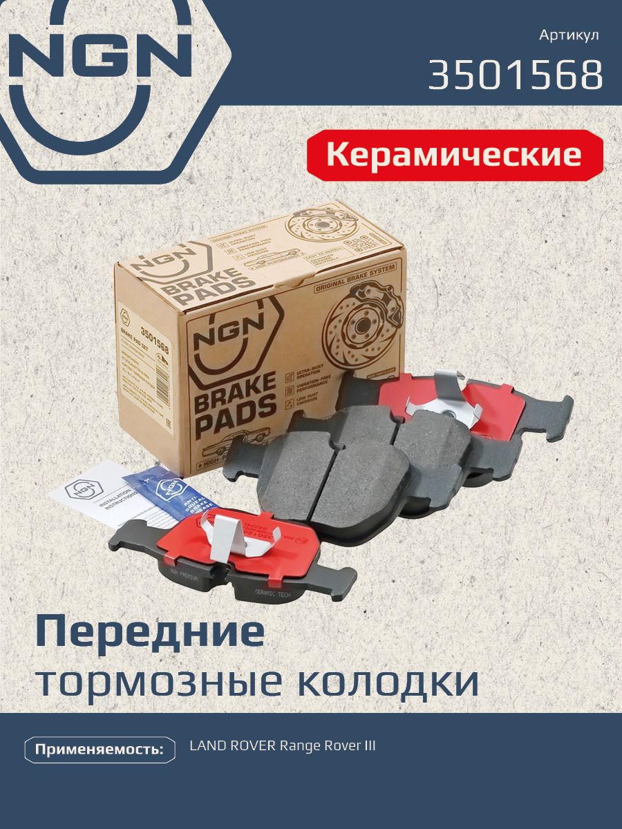 Колодки тормозные керамические, передние NGN 3501568. Для LAND ROVER Range Rover III 02-12Комплектация: