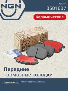 Колодки тормозные керамические, передние NGN 3501687. Для INFINITI FX(S50) 03>, NISSAN Maxima 00-04Комплектация:
