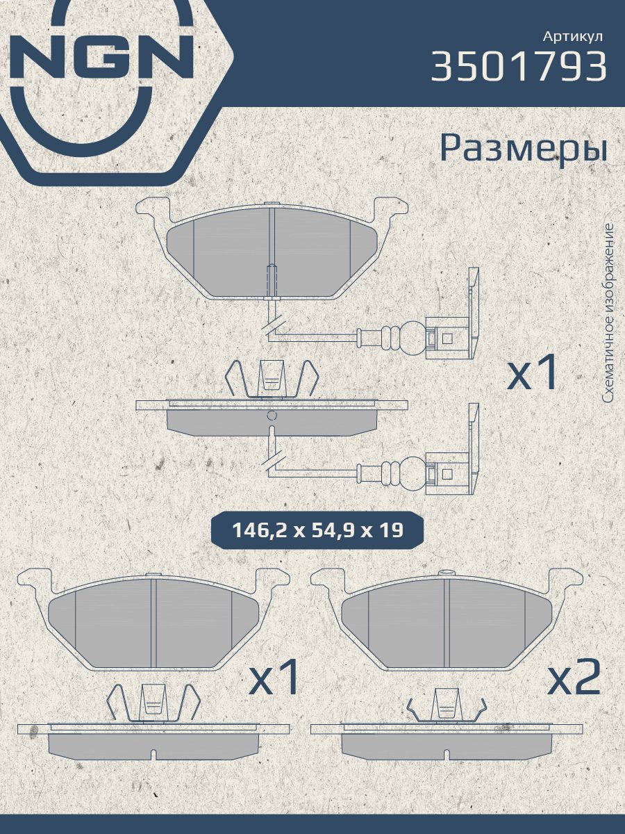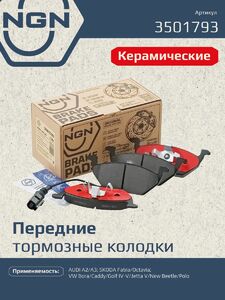 Колодки тормозные керамические передние NGN 3501793. Для AUDI A2 00 A3 03 SKODA Fabia 99 Octavia 96 VW Bora 98 Caddy/Golf IV-V/Jetta V/New Beetle 98 Polo 01