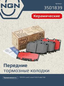 Колодки тормозные керамические, передние NGN 3501839. Для TOYOTA Land Cruiser(100) 98> / Prado(150) 10>Комплектация: