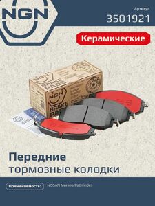 Колодки тормозные керамические передние NGN 3501921. Для NISSAN Murano 04 Pathfinder 05