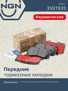 Колодки тормозные керамические, передние NGN 3501935. Для TOYOTA Land Cruiser Prado(120/150) 03>, LEXUS GX460 09>Комплектация: