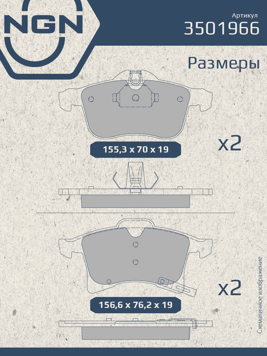 Колодки тормозные керамические, передние NGN 3501966. Для OPEL Astra H 04> / Meriva 03> / Zafira B 05>Комплектация: