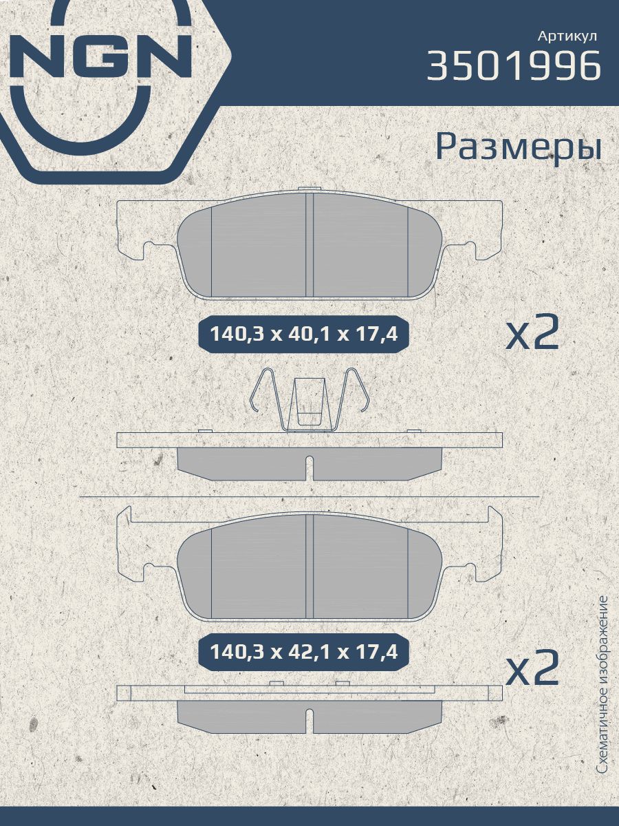 Колодки тормозные керамические, передние NGN 3501996. Для RENAULT Logan/Sandero II 12>, RENAULT Clio IV 12>Комплектация: