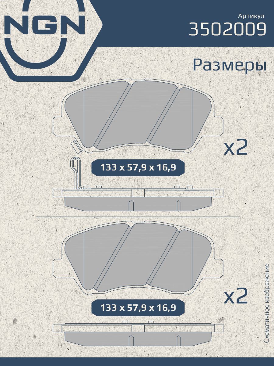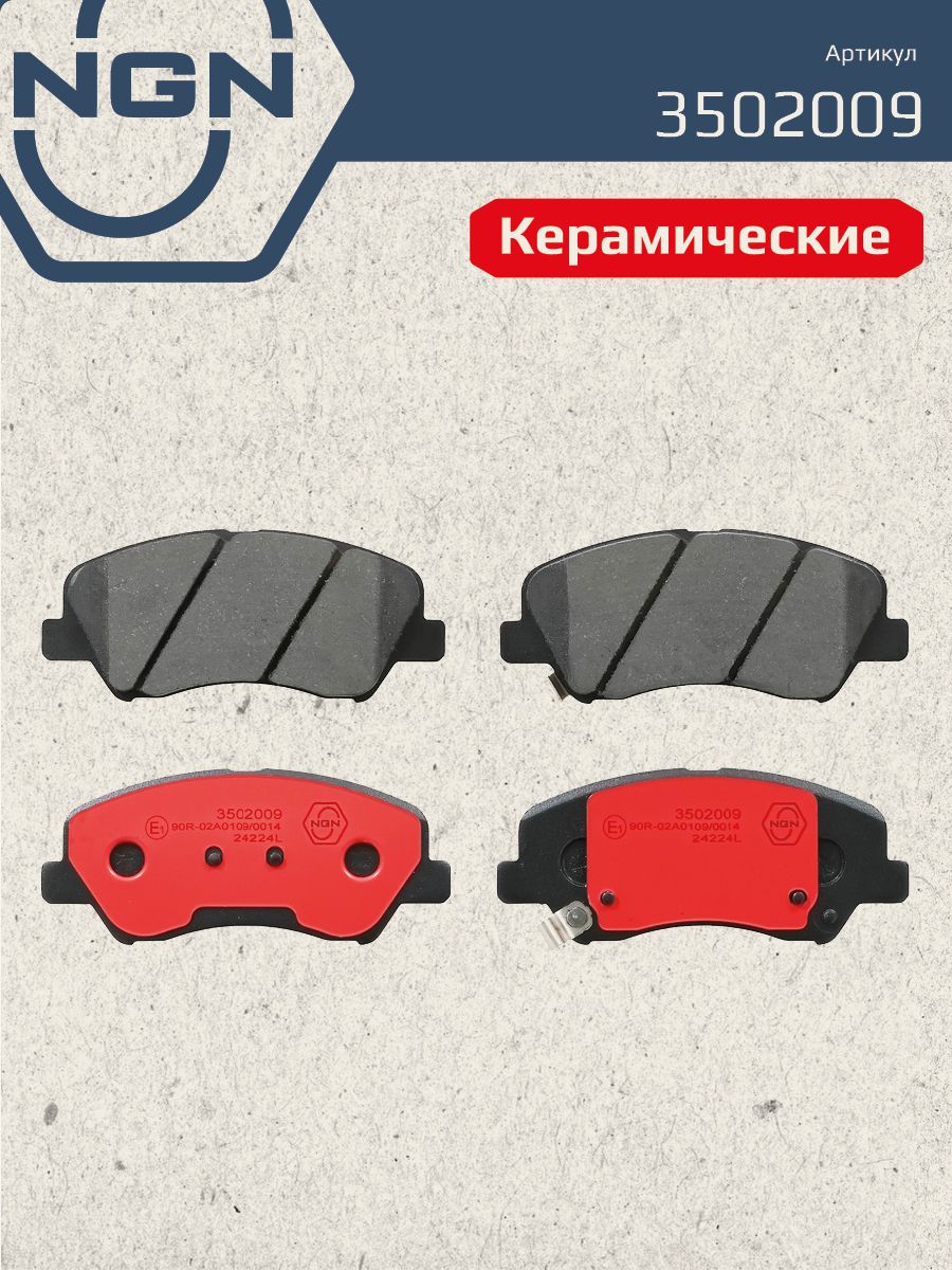 Колодки тормозные керамические, передние NGN 3502009. Для HYUNDAI Solaris 10>, KIA Rio III 11>, GEELY Atlas / Emgrand 7Комплектация: