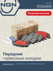 Колодки тормозные керамические передние NGN 3502009. Для HYUNDAI Solaris 10 KIA Rio III 11 GEELY Atlas Emgrand 7
