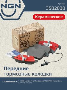 Колодки тормозные керамические передние NGN 3502030. Для FORD Mondeo IV 07 S-Max 06 Galaxy 06 LANDROVER Freelander II 06 VOLVO S80/V70 06