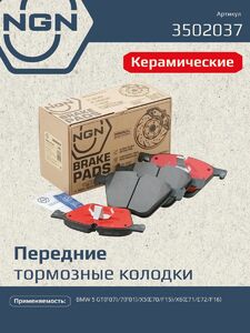 Колодки тормозные керамические передние NGN 3502037. Для BMW 5 GT(F07) 08 7(F01) 10-15 X5(E70/F15) 10 X6(E71/E72/F16) 08